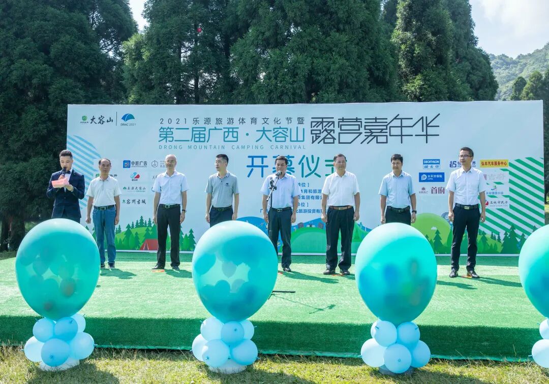 玉林市文化广电体育和旅游局党组书记、局长顾雄文,玉林交通旅游投资集团有限公司党委书记陈翔,玉林市文化广电体育和旅游局党组成员、副局长、二级调研员梁正宁,玉林交通旅游投资集团有限公司董事、副总经理黄东红,北流市文体广电和旅游局党组书记、局长徐庆强,玉林市乐源文化旅游投资有限公司董事长、总经理缪宗燊,广西乐源大容山文化旅游投资有限公司董事长、总经理黄显生,玉林市文化广电体育和旅游局、北流市人民政府、北流市人民政府研究发展中心、北流市文体广电和旅游局、北流市文化和旅游发展中心相关干部,玉林日报、玉林晚报、玉林广播电视台、广西新闻网等媒体代表以及赞助商家代表、旅行社代表、本次活动举办单位的干部职工以及来自各地的露营爱好者和参加帐篷草地音乐节的嘉宾朋友等约100人参加了开幕仪式。