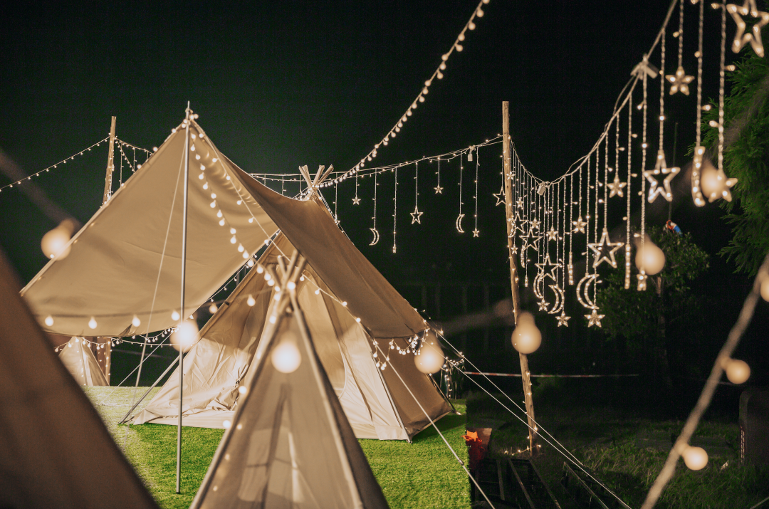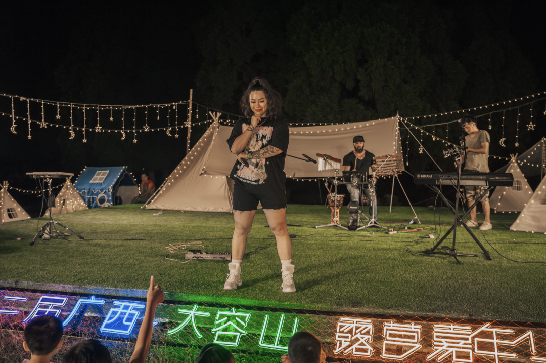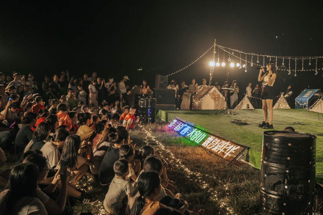 当夜幕降临时,万众期待的帐篷草地音乐节在一阵阵欢呼声中拉开序幕,特色的尖顶帐篷与充满氛围的星星灯点缀,让整个活动现场更加具有大自然的气息,激情澎湃的击鼓声及歌声很快就把大家带入到狂欢中。