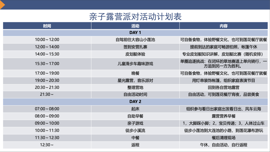 皮划艇、滑步车、家庭表演、徒步小溪流等丰富的亲子活动,定能给孩子们带来难忘的露营之旅~