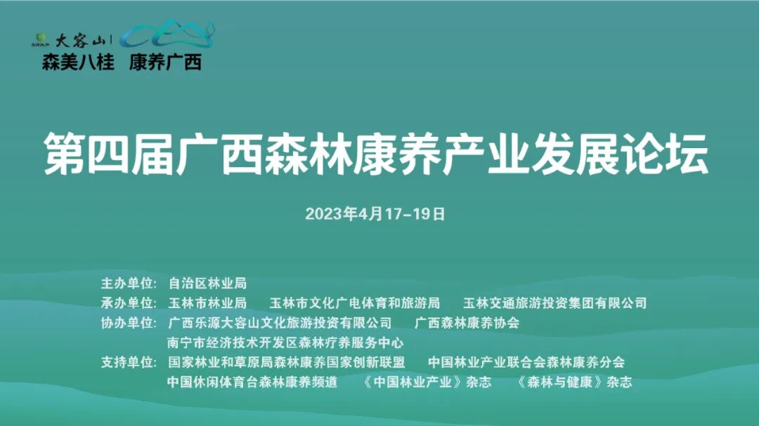 2023年4月17-19日,第四届广西森林康养产业发展论坛将在玉林市大容山森林康养基地召开。来自区内外的专家学者相聚一堂,就森林康养产业的政策走向、发展思路、内涵提升、资源开发、产业发展等进行深刻解读和思路分享,共同探讨森林康养产业发展新路径,为广西森林康养产业发展凝聚智慧活力。
